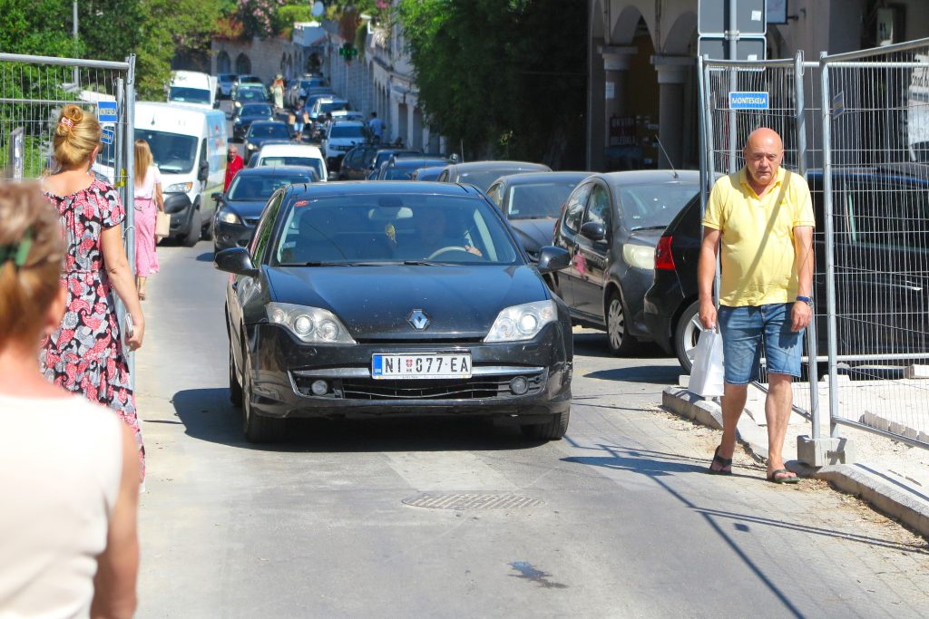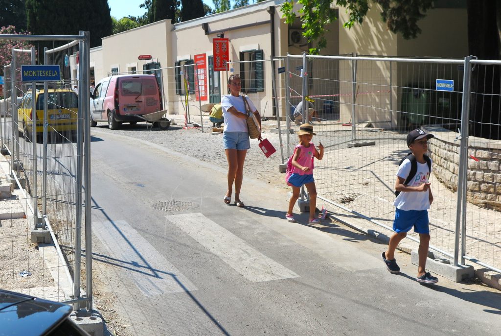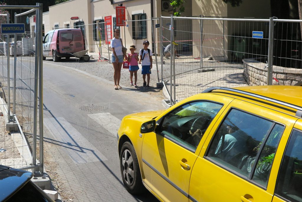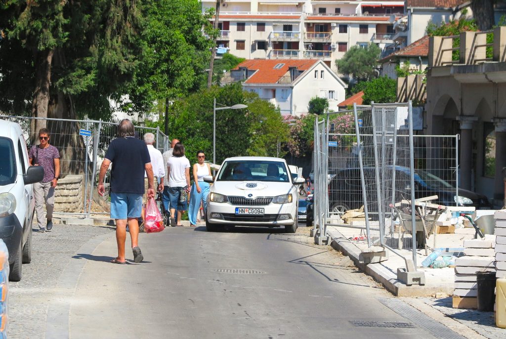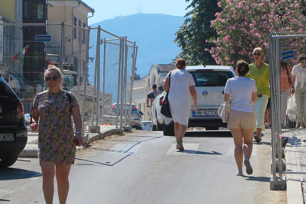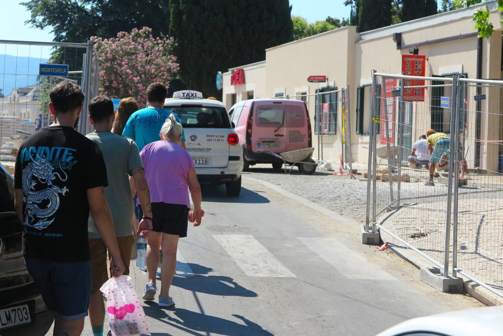 Sveže postavljena zebra u Njegoševoj ulici u Herceg Novom privukla je pažnju prolaznika u petak, 4. jula. Poplavljanja trotoara na gradilištu restauracije Njegoševe ulice ulaze u finalnu fazu, a obećanje je da će radovi biti gotovi do 13. jula. Zanimljivo je da su obe strane zebra prelaza bile zagrađene, zbog čega su se pješaci umjesto preko zebre kretali duž ulice.